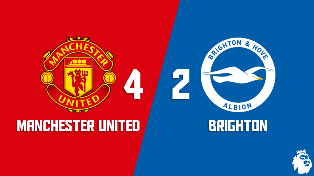 خلاصه بازی بین تیمهای منچستر یونایتد و برایتون از چارچوب رقابتهای لیگ برتر فوتبال انگلیس که با برتری ۴-۲ منچستر یونایتد به پایان رسید.
